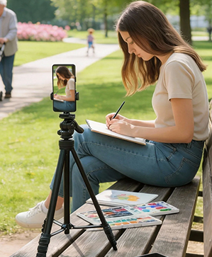 Your All-in-One Travel SupportEscape the limits of handheld shooting without the bulk. The lightweight yet sturdy aluminum build and compact foldable design let you bring reliable support anywhere—from mountain hikes to city vlogs—without weighing you down.Shoot from Any Angle, AnytimeUnlock creative flexibility with quick height and angle adjustments. The versatile ball head and extendable legs allow you to easily switch between low-angle shots, eye-level portraits, and overhead scenes, so you never miss the perfect frame.Hold Your Gear with ConfidenceBuilt with a solid aluminum frame and non-slip feet, this tripod keeps your smartphone, camera, or lighting accessories stable and secure—even on uneven ground—so you can shoot with peace of mind.Set Up in Seconds, Pack in a SnapGet ready to shoot faster with user-friendly quick-release locks and a foldable design. Whether you’re rushing to catch golden hour or wrapping up a live stream, this tripod won’t slow you down.The Perfect Companion for Every CreatorDesigned to adapt to your workflow, it works seamlessly with phones, cameras, ring lights, and more—making it the go-to support for photographers, streamers, travelers, and content creators at any level...