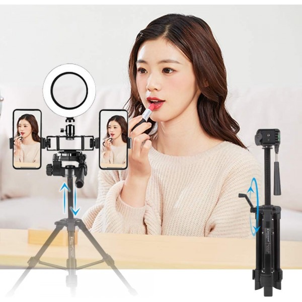 - 6 in One Complete Tripod - This desktop vlog tripod stand for camera and phone come with all neccessary tools including: small tripod base, tripod head, monopod, smart phone mount, action camera adapter, and LED light adapter mount.