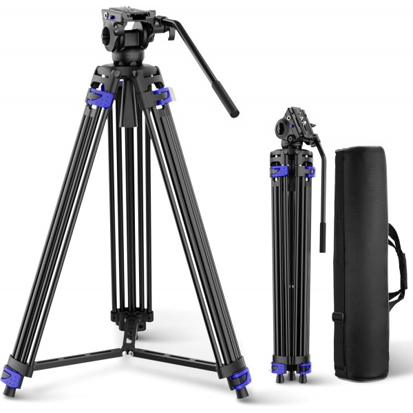 • 74" Height with Fluid Head – Offers smooth pan-and-tilt movements for professional video recording, with a maximum height of 74 inches for versatile framing options.
